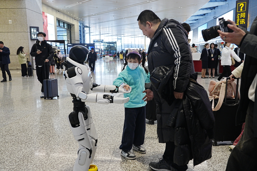 东航新一代智能服务机器人“东东”也亮相虹桥机场T2值机区,答复旅客问询。
